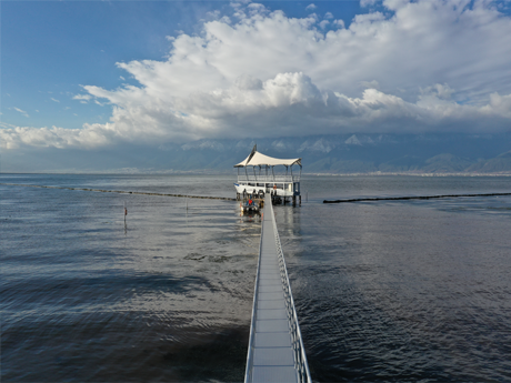 采用高效可調(diào)式渦井取藻、藍(lán)藻囊團(tuán)破壁、一體化二級強(qiáng)化氣浮等核心技術(shù),岸上站點藻水分離系統(tǒng)集成了藍(lán)藻打撈、脫氣沉降、氣浮分離、脫水等多個環(huán)節(jié)的技術(shù)和設(shè)備,形成了可規(guī)模化和工廠化處理藍(lán)藻的基站。適用于藍(lán)藻水華長期規(guī)律性、大范圍聚集區(qū)域的常態(tài)化應(yīng)急處置。