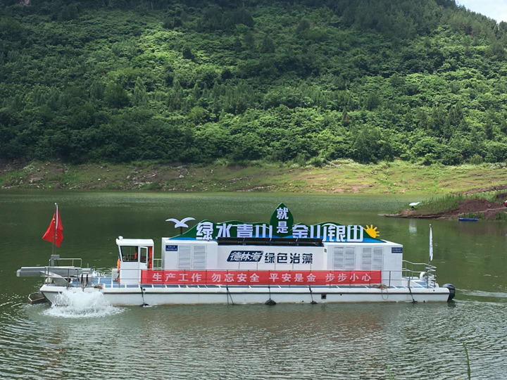 公司研發(fā)的加壓控藻船,以玻璃鋼船體為平臺,配置藍(lán)藻打撈、壓力控藻和曝氣裝置...